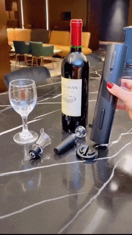 Nuestro descorchador eléctrico te permite abrir botellas con solo apretar un botón, eliminando el estrés de los corchos rebeldes. Además, con nuestro vertedor evita goteos molestos, asegurando que cada gota caiga donde debe. ¡Disfruta el vino desde su apertura hasta su consumo 🍷!
